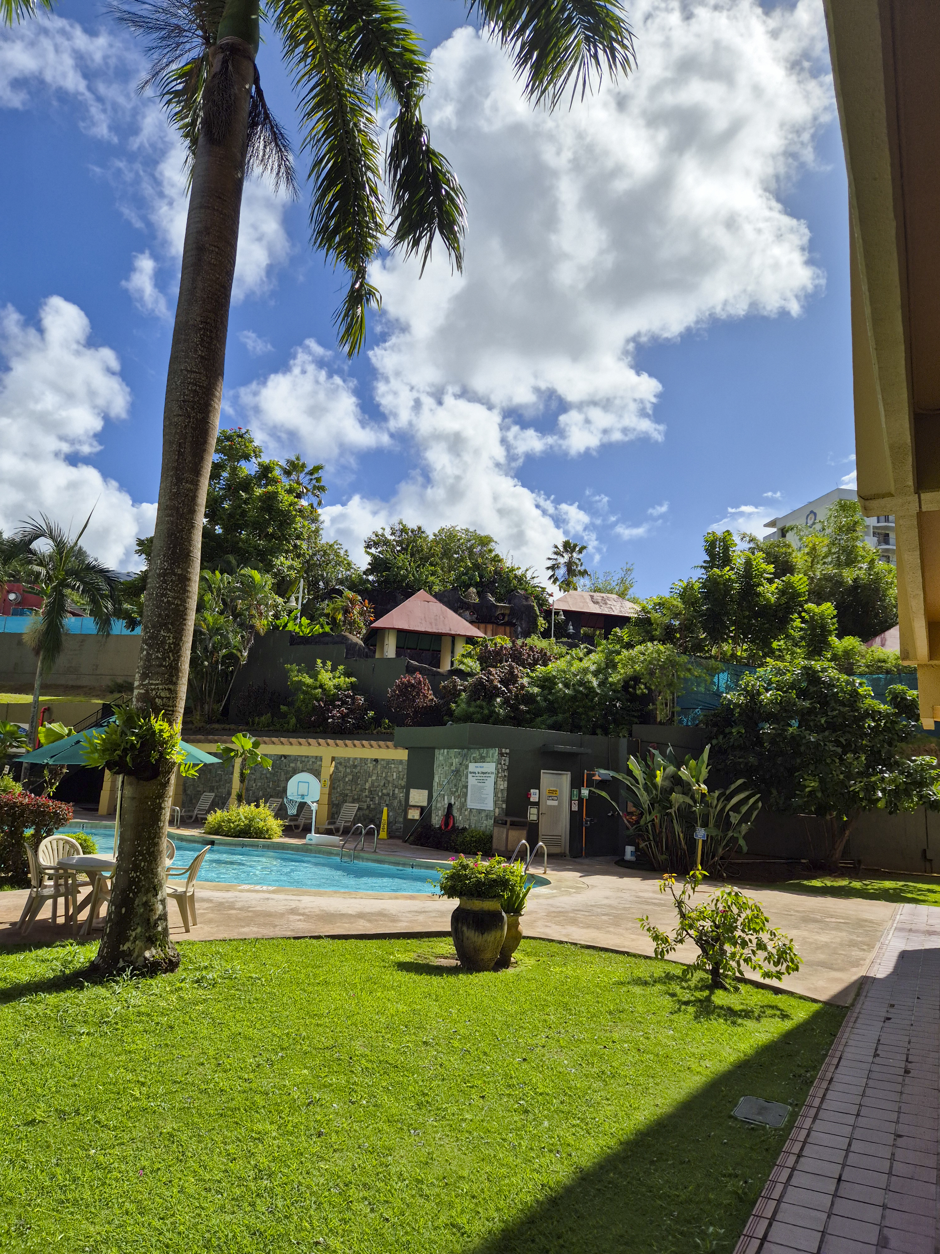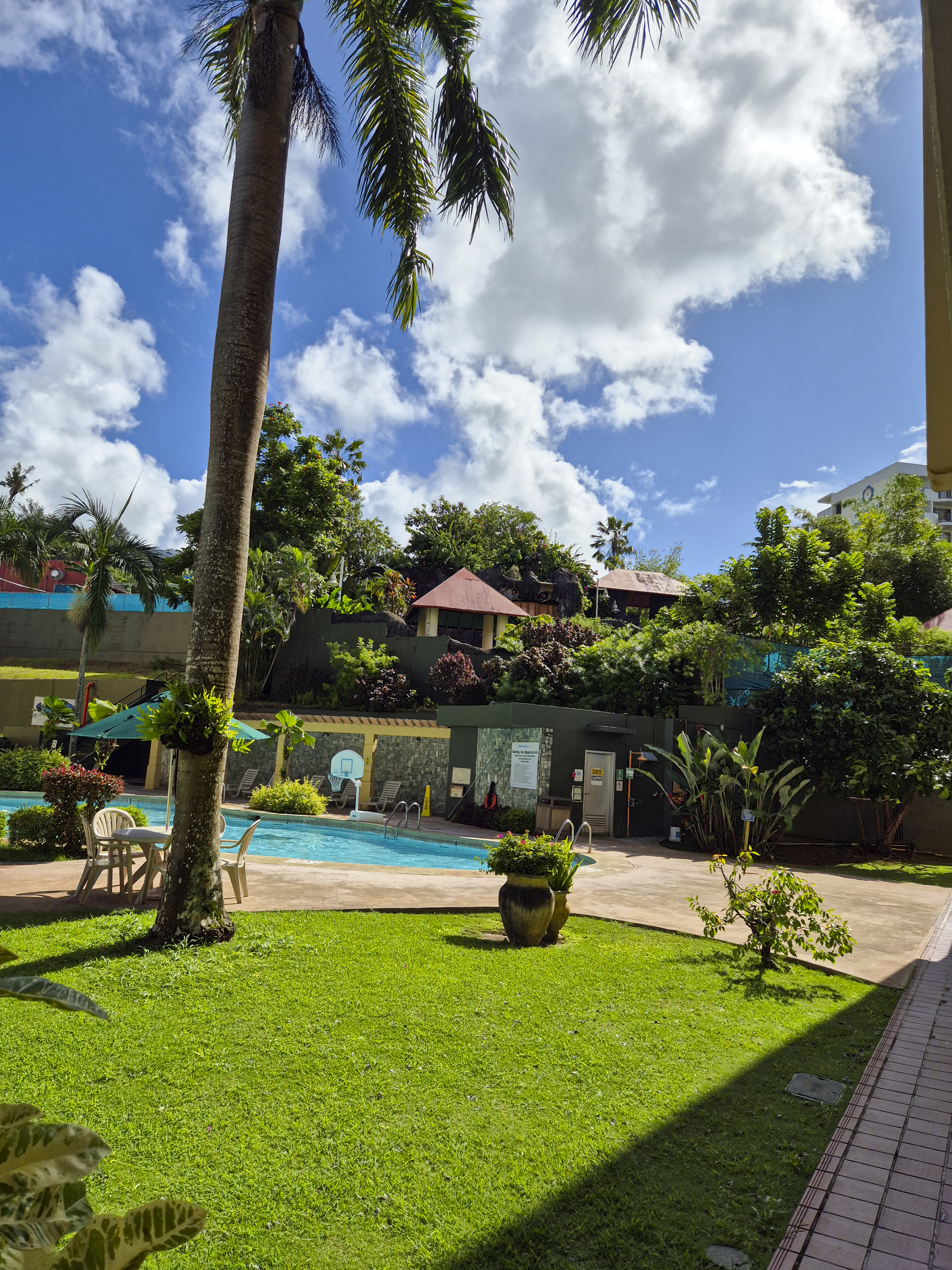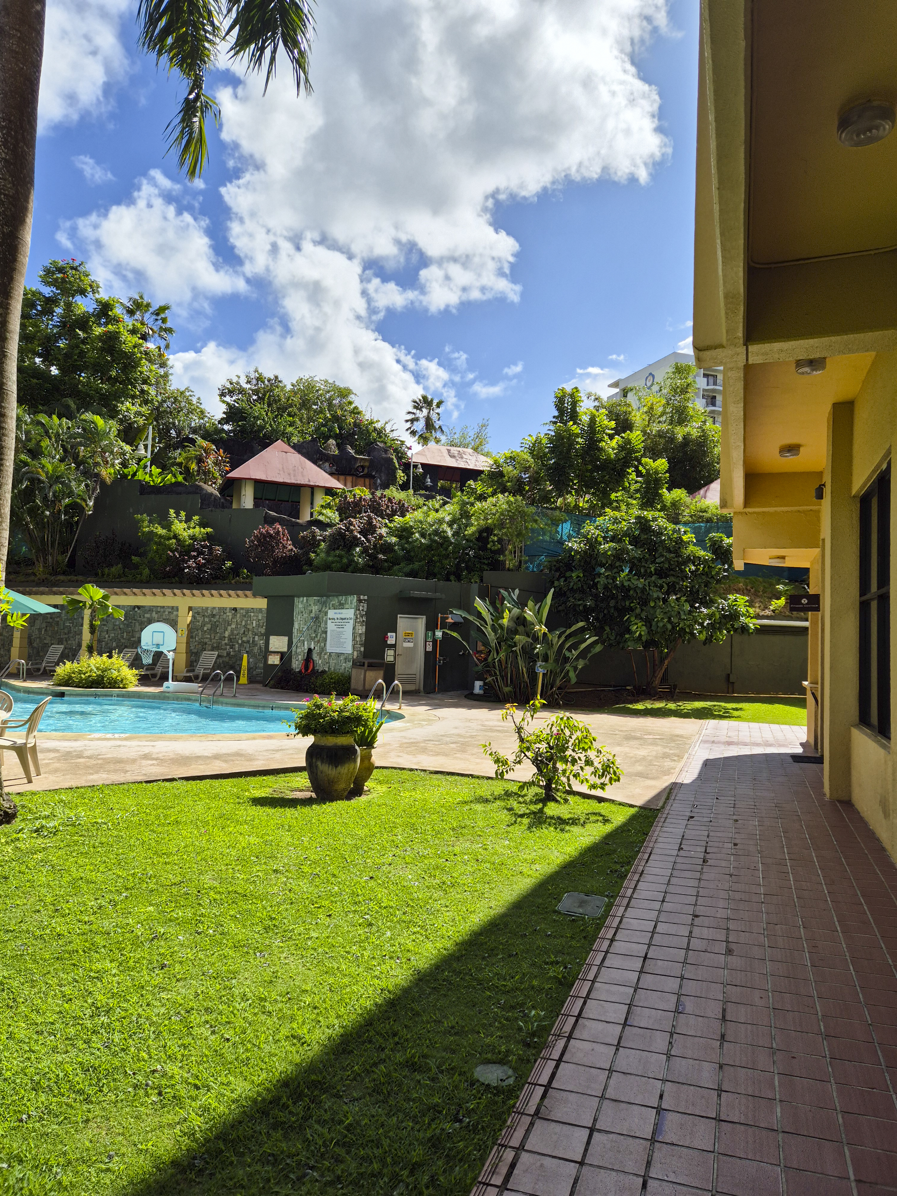 사실 제가 괌 숙소에서 머물면서 가장 마음에 들었던 부분 중 하나가 바로 수영장입니다. 이곳은 괌 플라자 리조트 별관과 본관 사이에 위치해 있으며, 2층에서 오실 수 있습니다. 이용 시간은 오전 8시경 부터였던 것으로 기억하는데, 정확하지는 않습니다.
