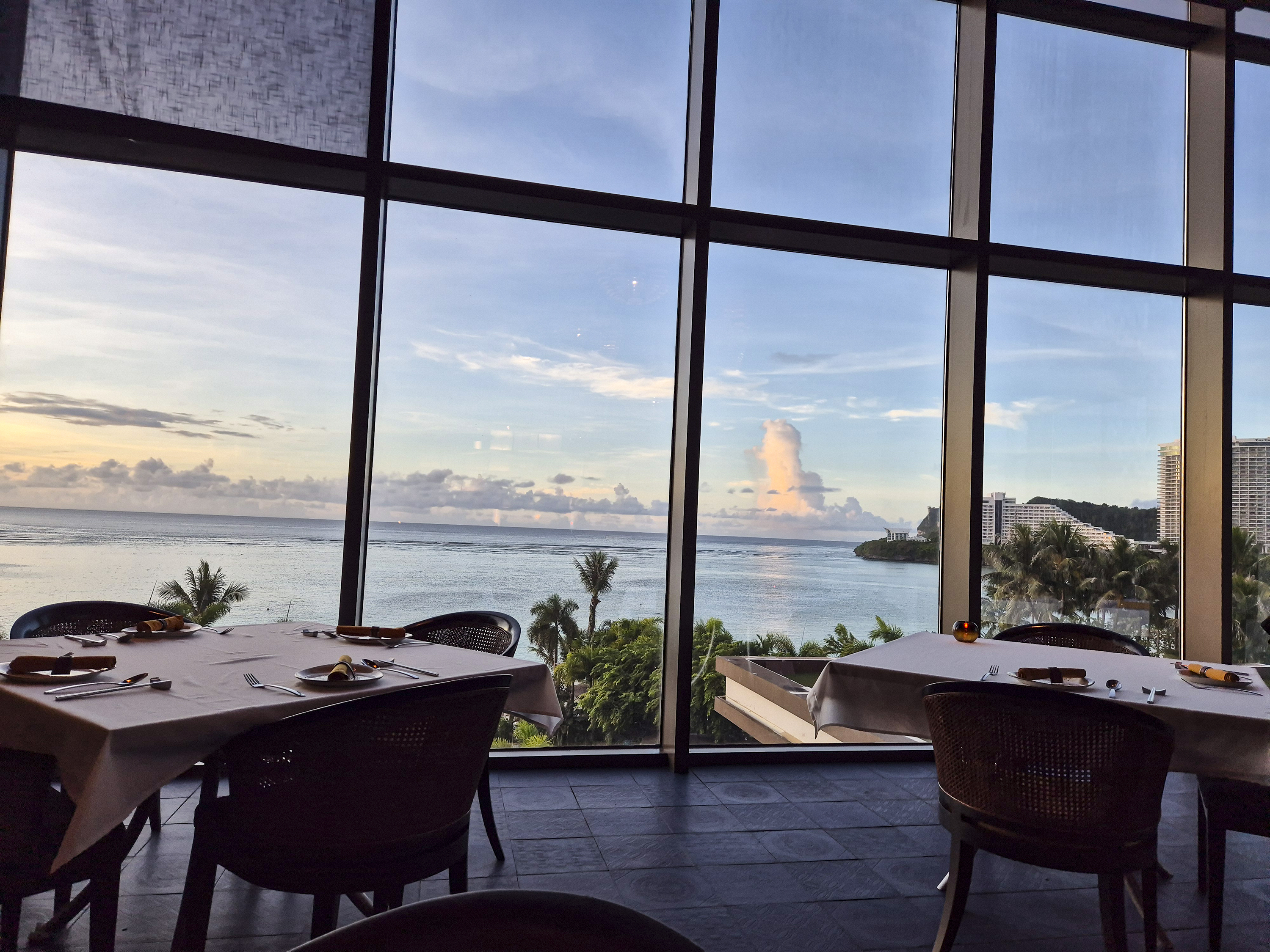 이곳은 두짓타니 괌에 숙박하시는 분들은 할인이 있는데, 저희는 다른 곳에서 숙박을 했기 때문에 할인 없이 방문했어요. 참고로 간혹 사람이 많은 성수기에는 자리가 없을 수 있지만, 비수기라서 그런지 다행히 자리가 있었어요. 덕분에 해질녘과 오션뷰가 잘 보이는 자리에 앉아서 식사를 할 수 있었답니다.