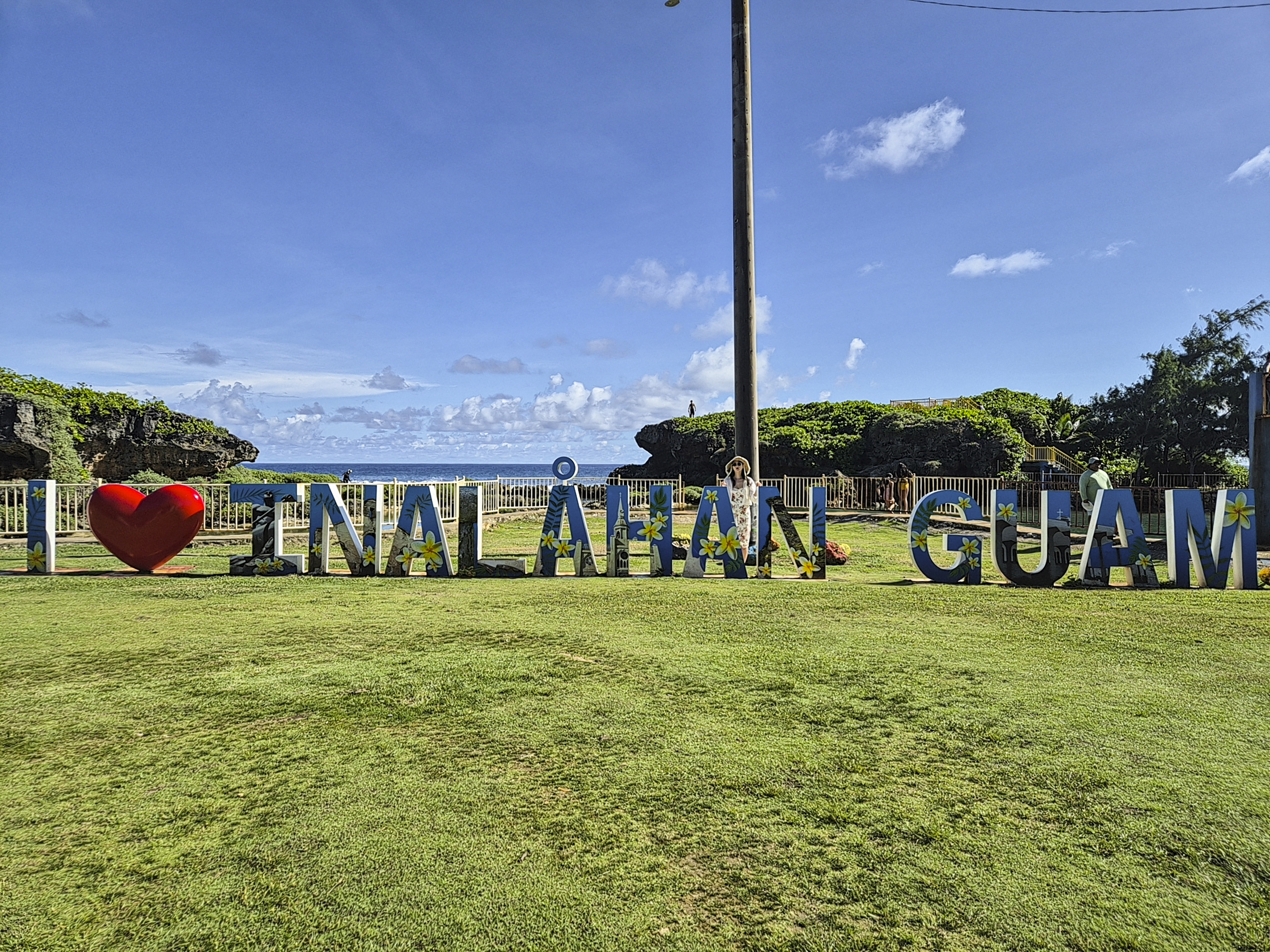 여기도 많은 분들이 찾아올 텐데요. 저 앞에 보이는 전망대로 들어가기 위해서는 추가 비용이 있기 때문에 저희는 이렇게 경계쪽에서만 둘러 봤어요. 하지만 굳이 전망대를 가지 않더라도 뷰가 굉장히 좋아서 저는 개인적으로 괌 가볼만한곳으로 추천드려요.