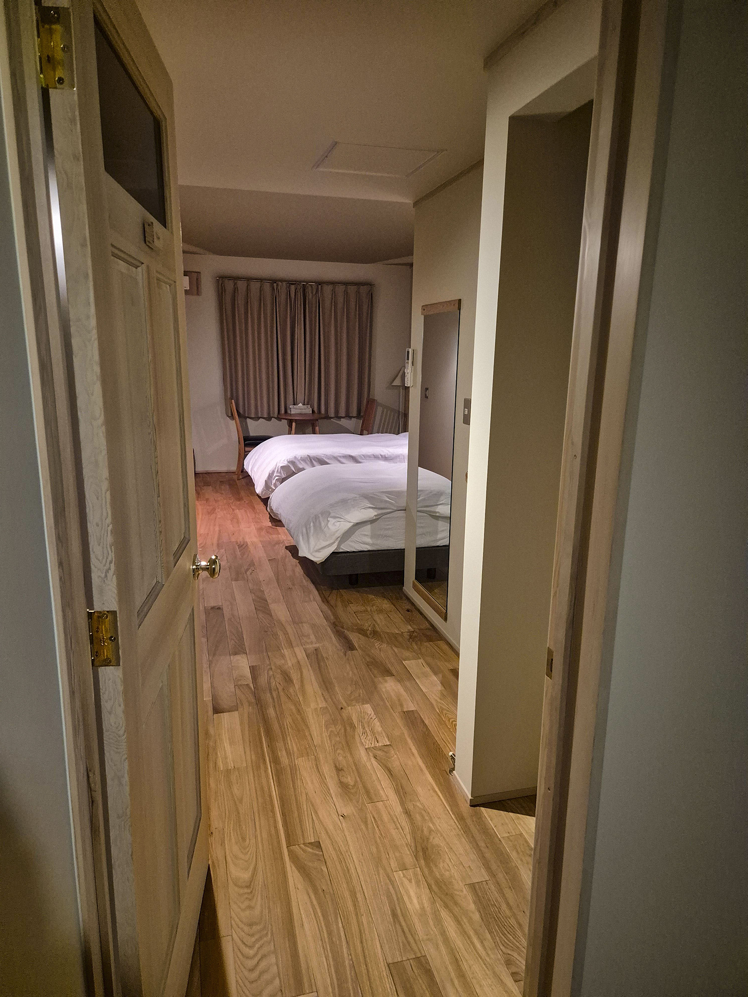삿포로 비에이 숙소를 찾으실 때 가장 중요하게 생각할 부분 중 하나는 바로 룸 컨디션일 것이라 생각합니다. 이는 수면의 질과 만족도에 영향이 있으며, 컨디션이 좋아야 편안한 숙면을 취하고 다음 날 여행 일정을 제대로 소화할 수 있습니다. 필자가 다녀온 Meiji의 경우에는 굉장히 깔끔하고 심플한 룸 구성이 마음에 들었습니다. 침대는 트윈으로 두 개가 있고, 작은 원형 테이블과 의자 2개가 있습니다. 화장실은 아담하고 포근한 느낌이 들 정도로 잘 관리되고 있습니다.