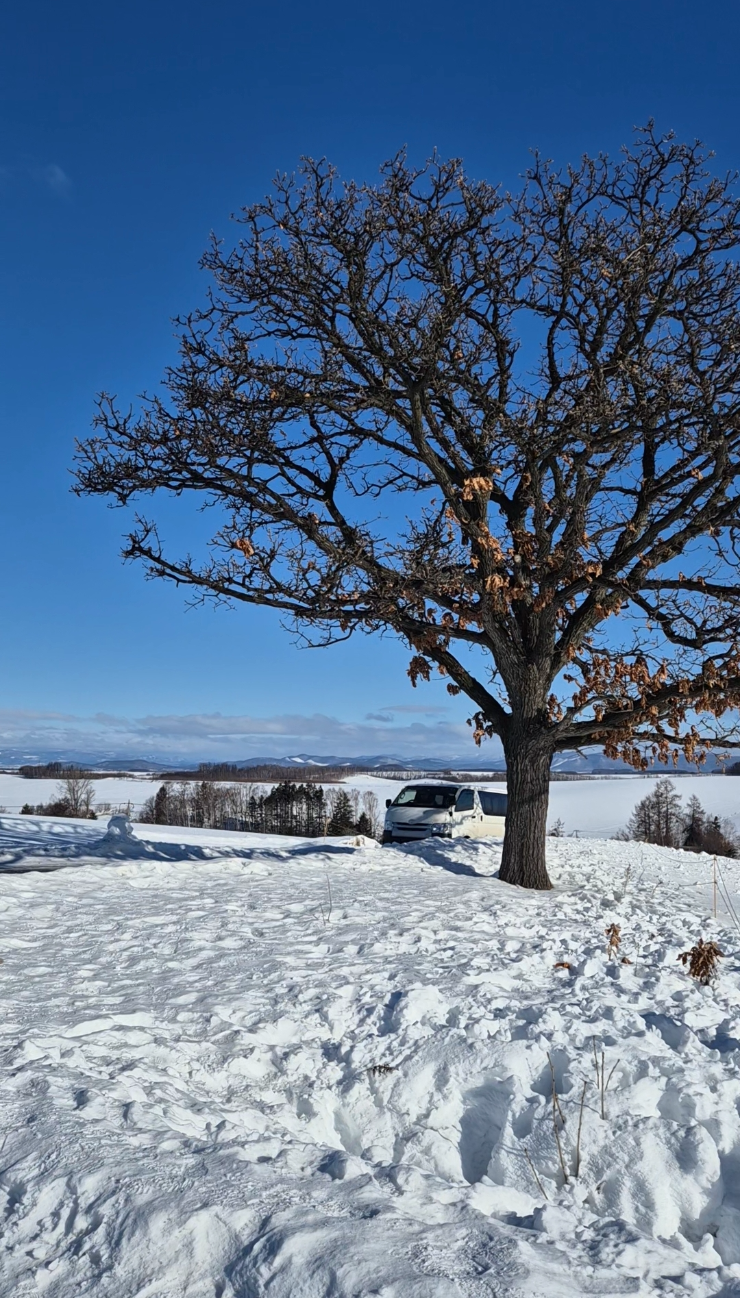 삿포로 자유여행 비에이 세븐스타나무 세븐스타트리를 보러 가신다면 주차장 뒷편에서도 사진을 찍어 보시는 것을 추천드립니다. 이 때의 이유 역시 뒤쪽의 설경이 굉장히 예쁘기 때문이며, 특히 거의 평지이기도 하고, 완전 뒤쪽으로 산등선이 보여 정말 멋진 사진을 찍을 수 있기 때문입니다. 필자의 개인적인 생각으로는, 나무 앞에서 찍는 것 보다도 이쪽에서 찍는 것이 더욱 멋지다는 생각이 들었습니다.