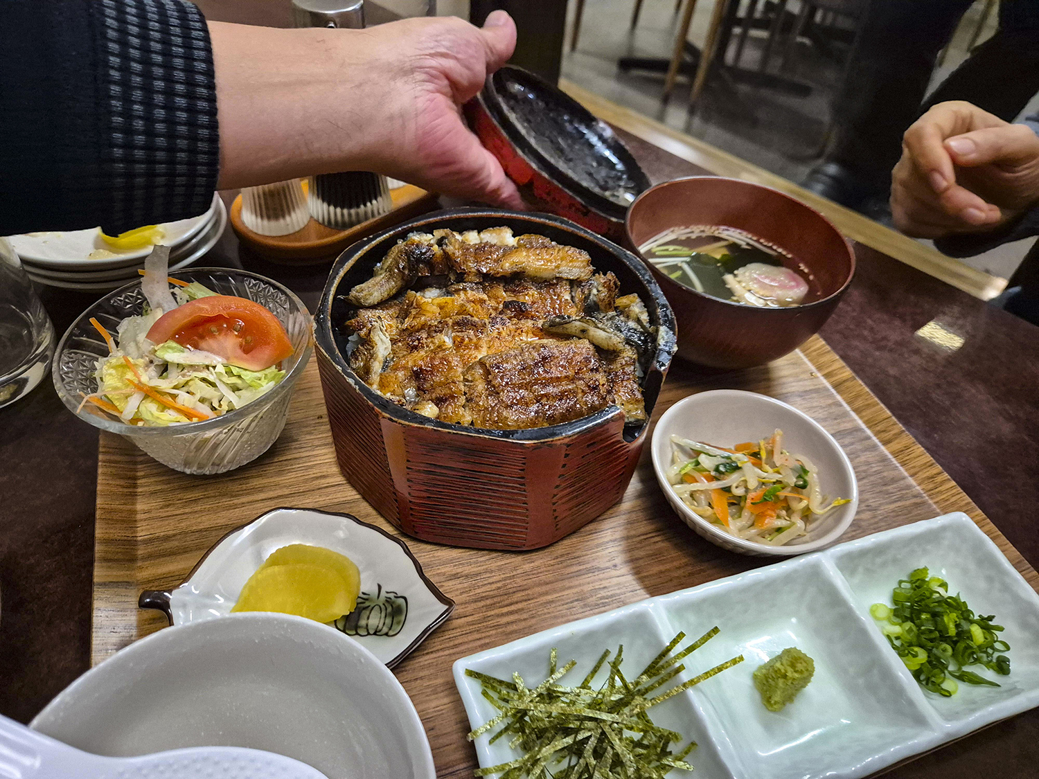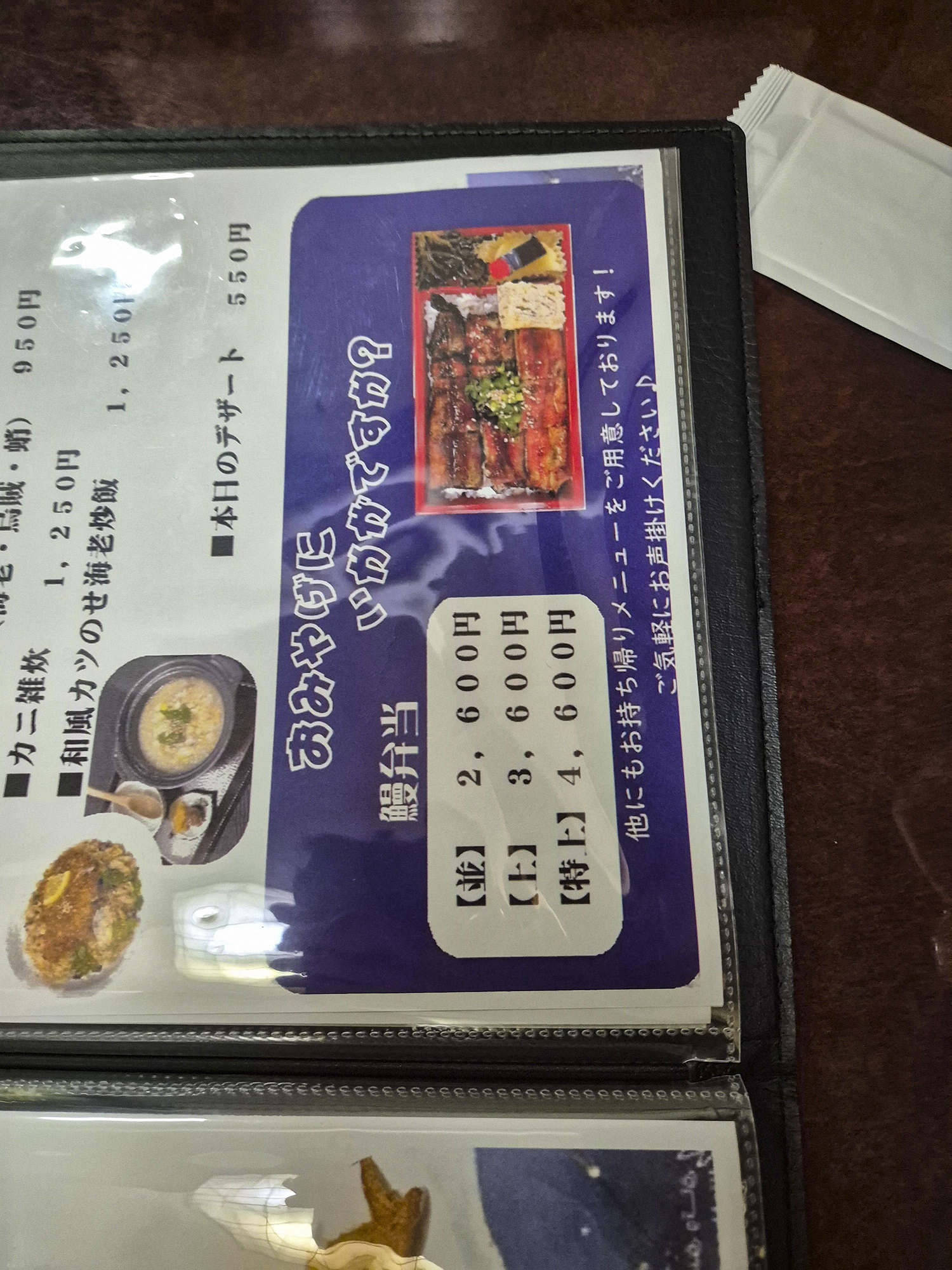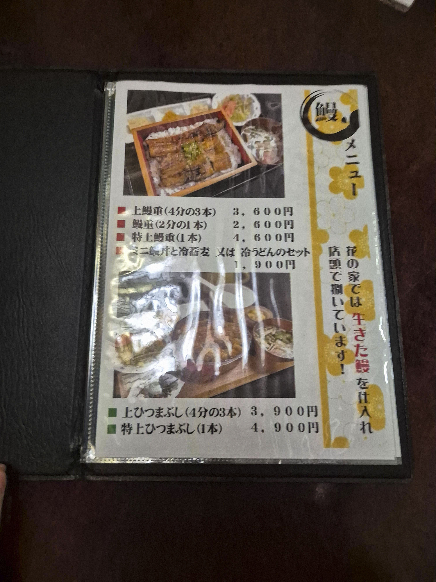 장어덮밥의 경우에는 3,900엔과 4,900엔짜리가 있습니다. 제 기억으로는 4,900원짜리가 1마리가 통쨰로 다 나오는 것으로 알고 있기 때문에 식사 량이 많은 분들이라면 아까워 하지 마시고 4,900엔짜리로 선택해 보시는 것을 권장드립니다.