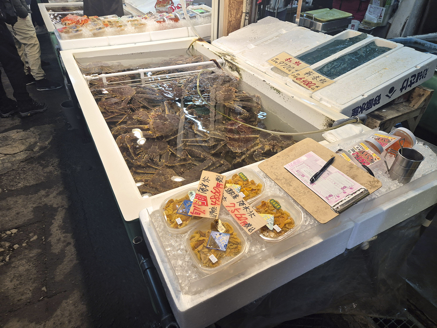 만약 여러분들이 오타루 여행을 하며 삼각시장에 가게 된다면 위의 사진에서 보시는 것처럼 굉장히 다양한 해산물들을 만나실 수 있습니다. 하지만 이 중에서도 당연 눈에 띄는 것이 있는데, 바로 대게입니다.