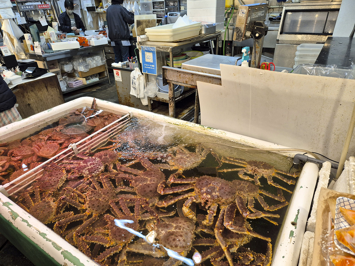만약 여러분들이 오타루 여행을 하며 삼각시장에 가게 된다면 위의 사진에서 보시는 것처럼 굉장히 다양한 해산물들을 만나실 수 있습니다. 하지만 이 중에서도 당연 눈에 띄는 것이 있는데, 바로 대게입니다.