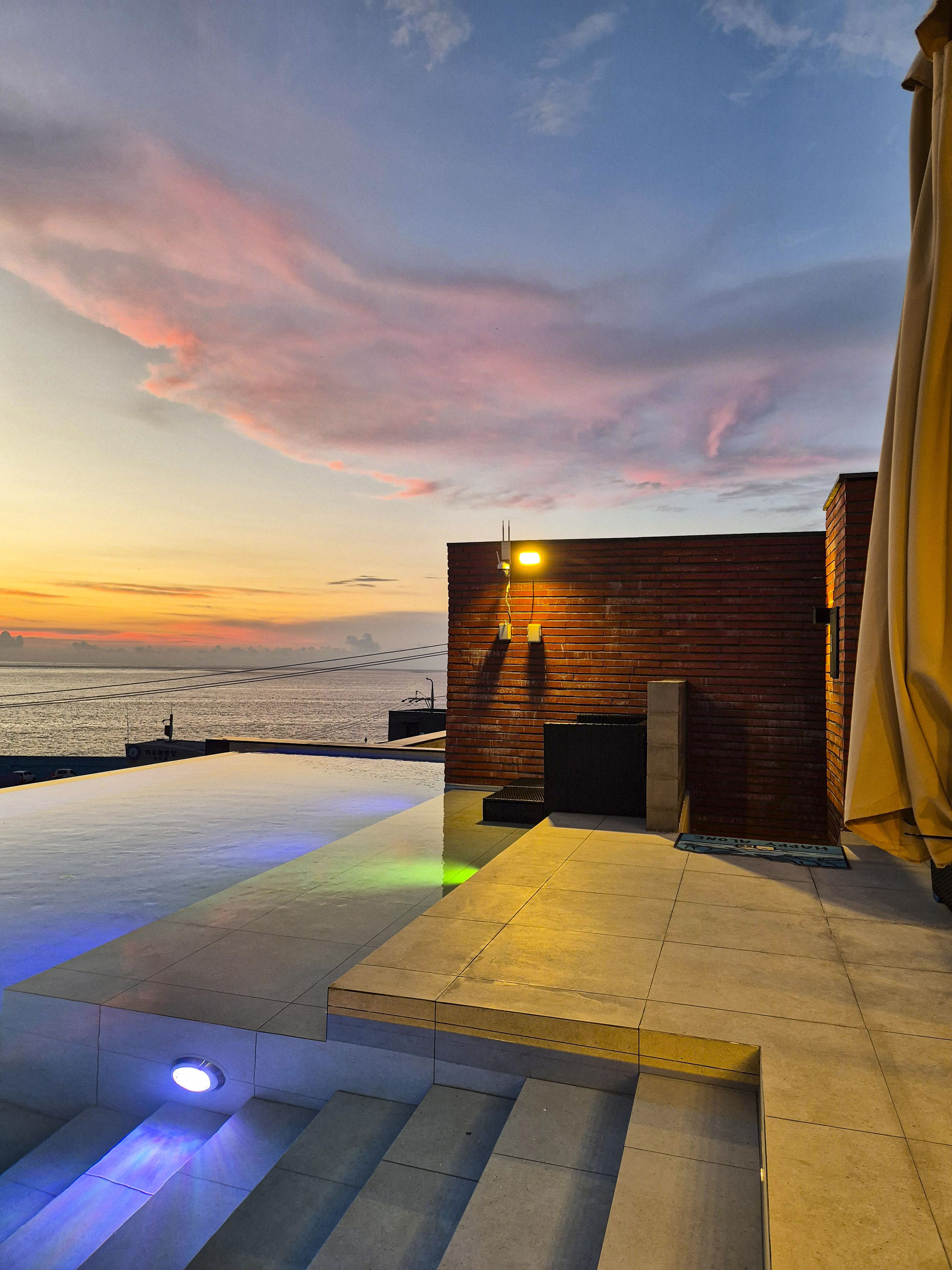 그 중에서도 꼭 말씀드리고 싶은 부분은 바로 탁 트인 뷰를 지닌 루프탑 수영장입니다. 이는 정말 큰 부분 중 하나입니다. 특히 우도의 경우, 해가 지면 해수욕장을 이용하는 것이 불가능하기 때문에, 해가 없더라도 마음껏 물놀이를 즐길 수 있는 이곳은 이용하지 않을 수 없을 만큼 매력적인 장소입니다.