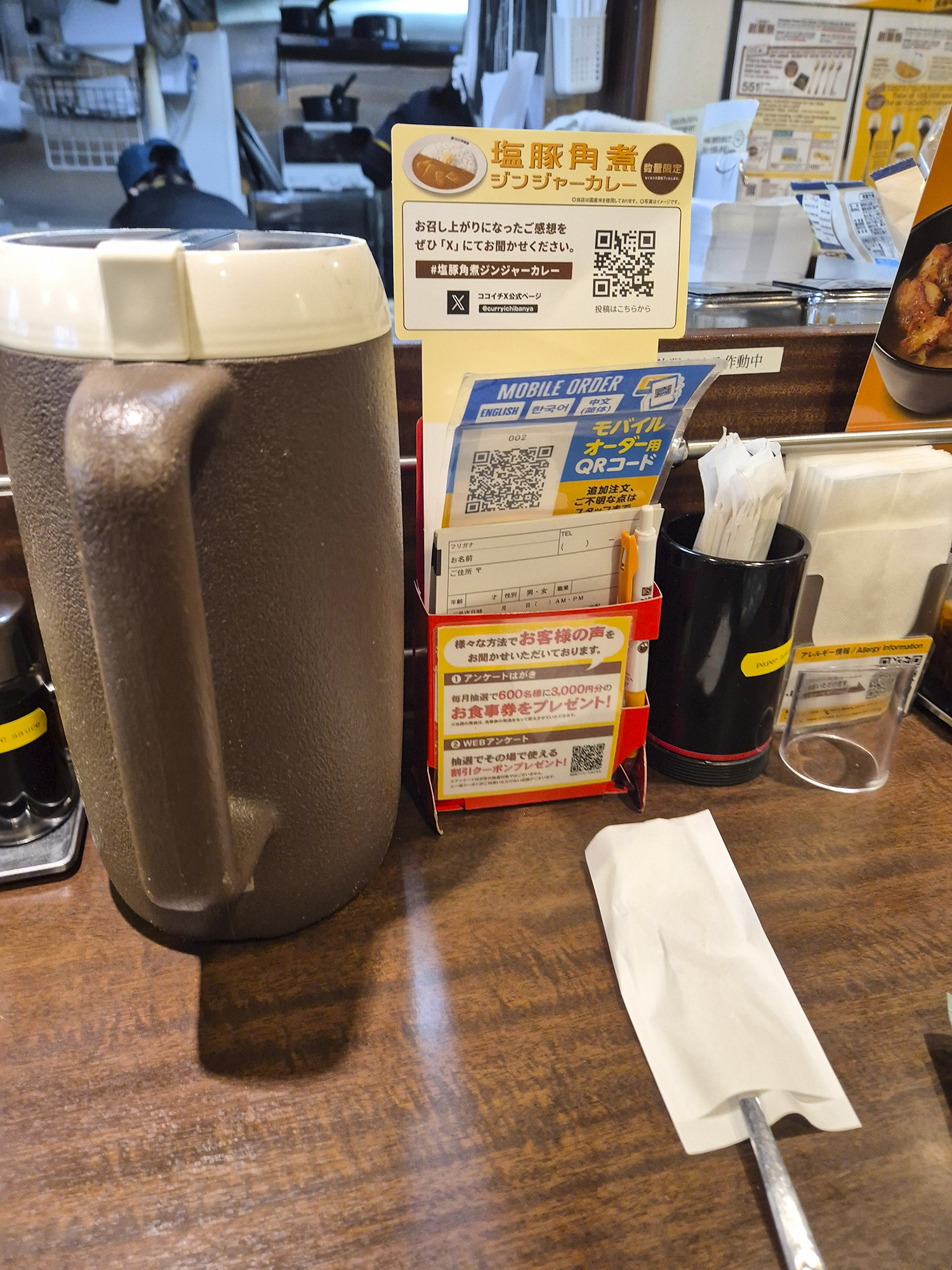 사실 돈키호테 삿포로 다누키코지 본점을 방문한 이후 여기저기 점심 식사를 하러 밖에서 약 40분간 돌아다니다가 결국 다시 근처로 돌아와 점심 식사를 했습니다. 식사 장소는 코코이찌방야에서 진행했고, 안에 좌석 수는 약 8석이 마련되어 있었습니다. 주문은 직원에게 따로 말하는 방식이 아닌, QR을 찍고, 나온 인터넷에서 개개인이 주문하는 방식입니다.