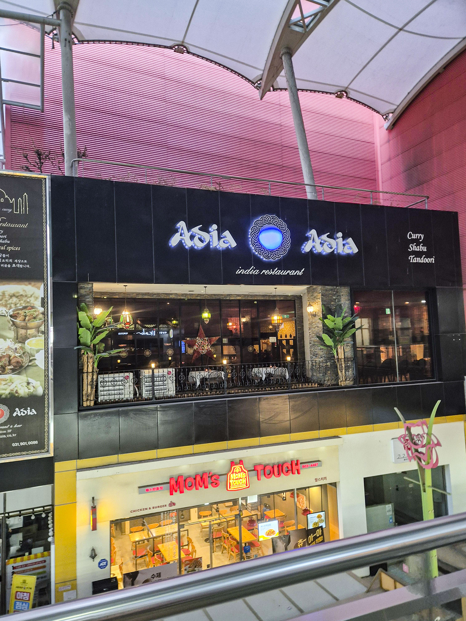 일산 인도 음식점 요리 먹는 아시아아시아의 전체적인 인테리어는 약간 차분한 조명과 함께 이색적인 분위기를 느낄 수 있어서 좋습니다. 우리나라의 기본적인 조명은 밝고, 가구들의 색상도 화려한 경우가 많은데, 이곳은 차분하기 때문에 마음에 들었습니다.