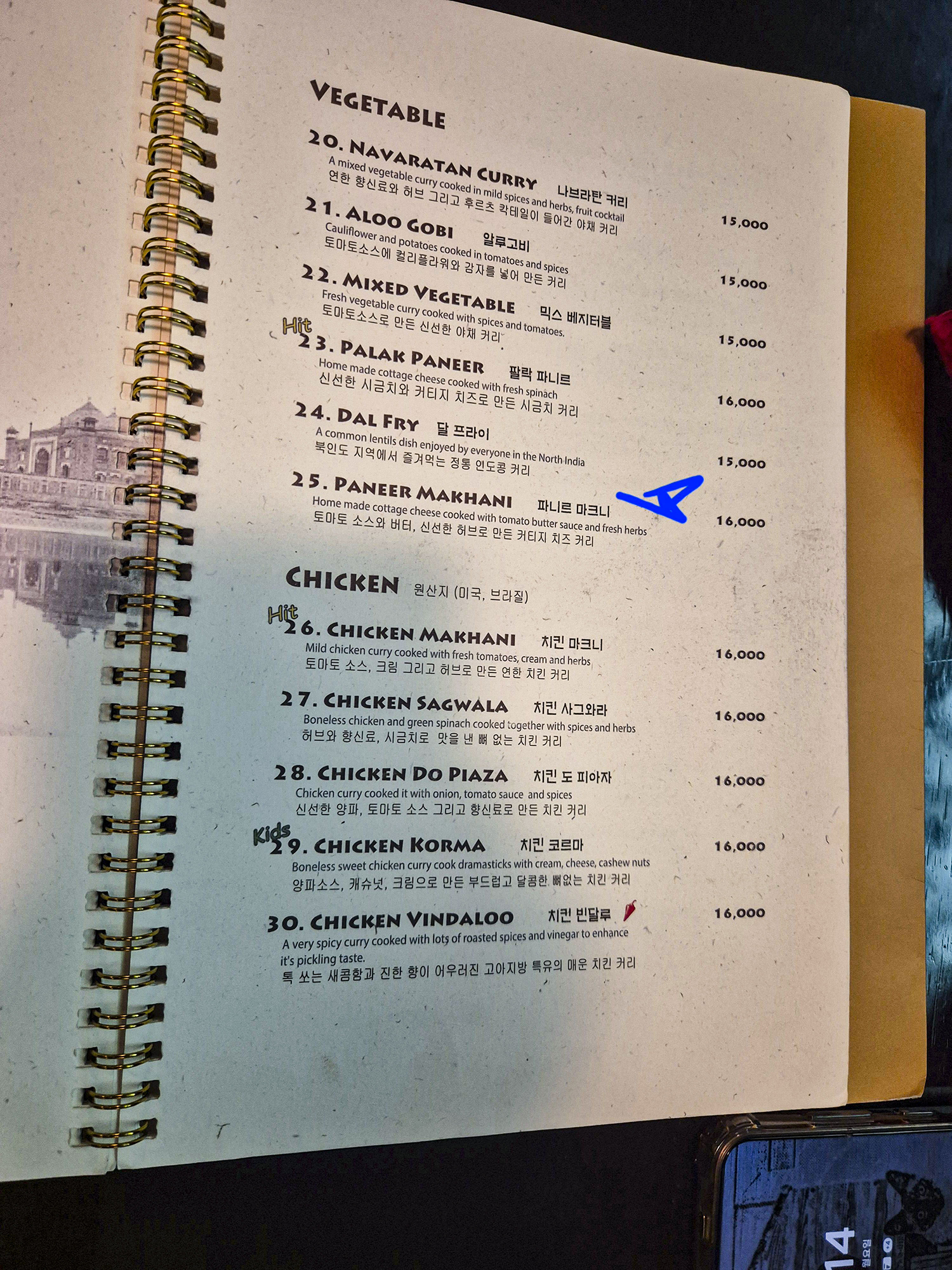 - 치킨 코르마 : 16,000원