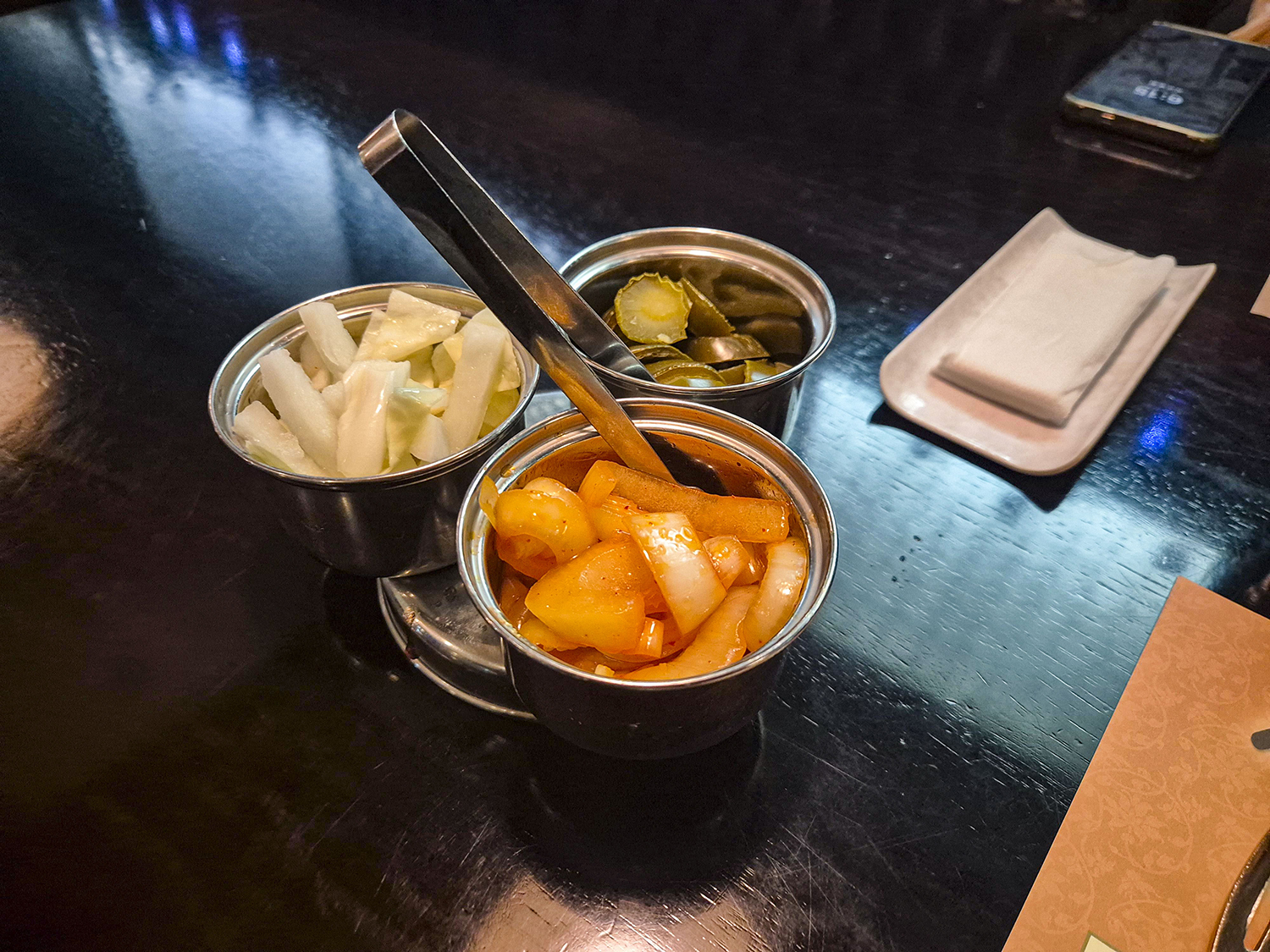 또한 주문 후에는 밑반찬 3개를 함께 준비해 주며, 이는 요청하면 계속해서 리필이 가능하니 참고하시기를 바랍니다.