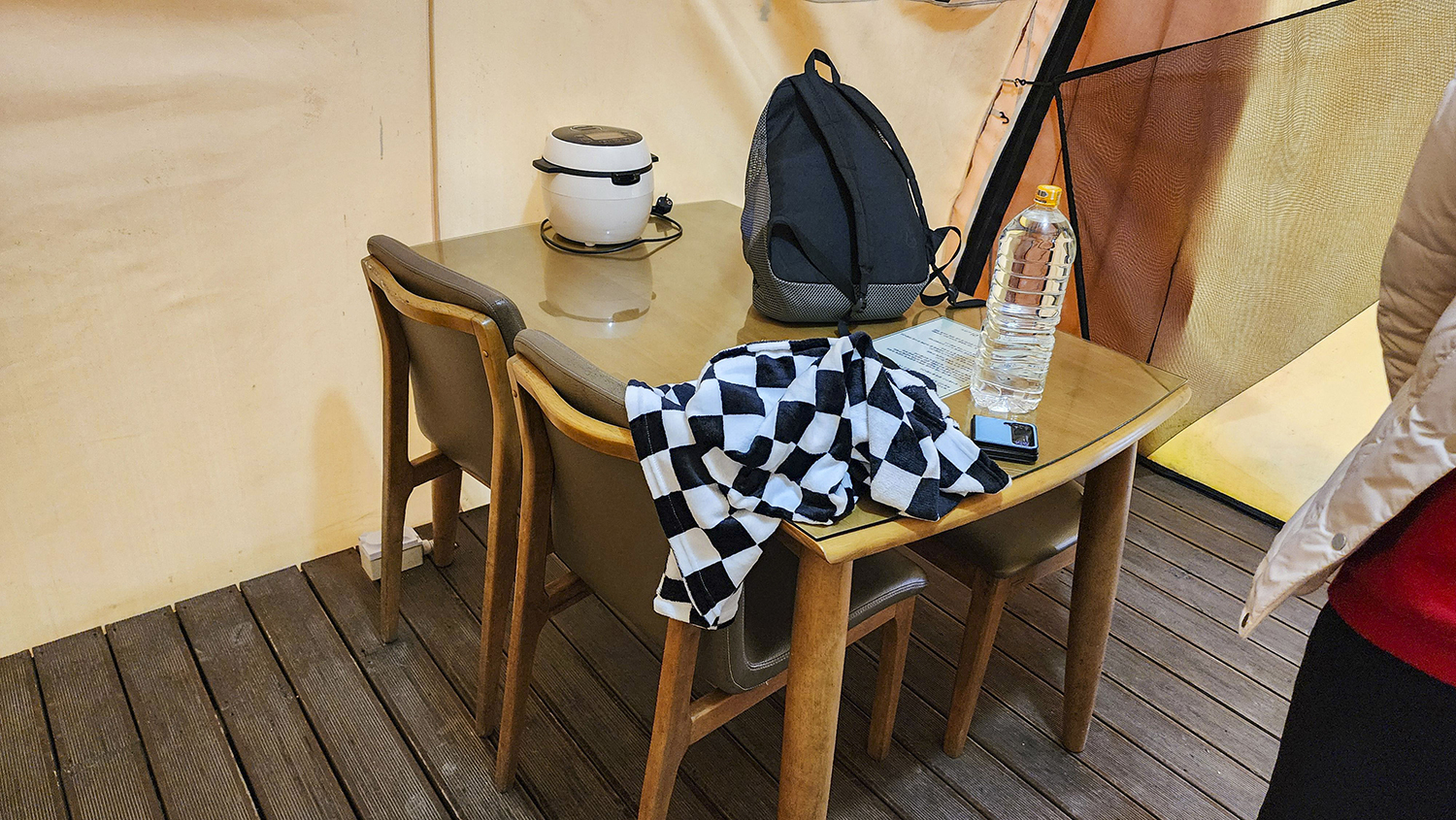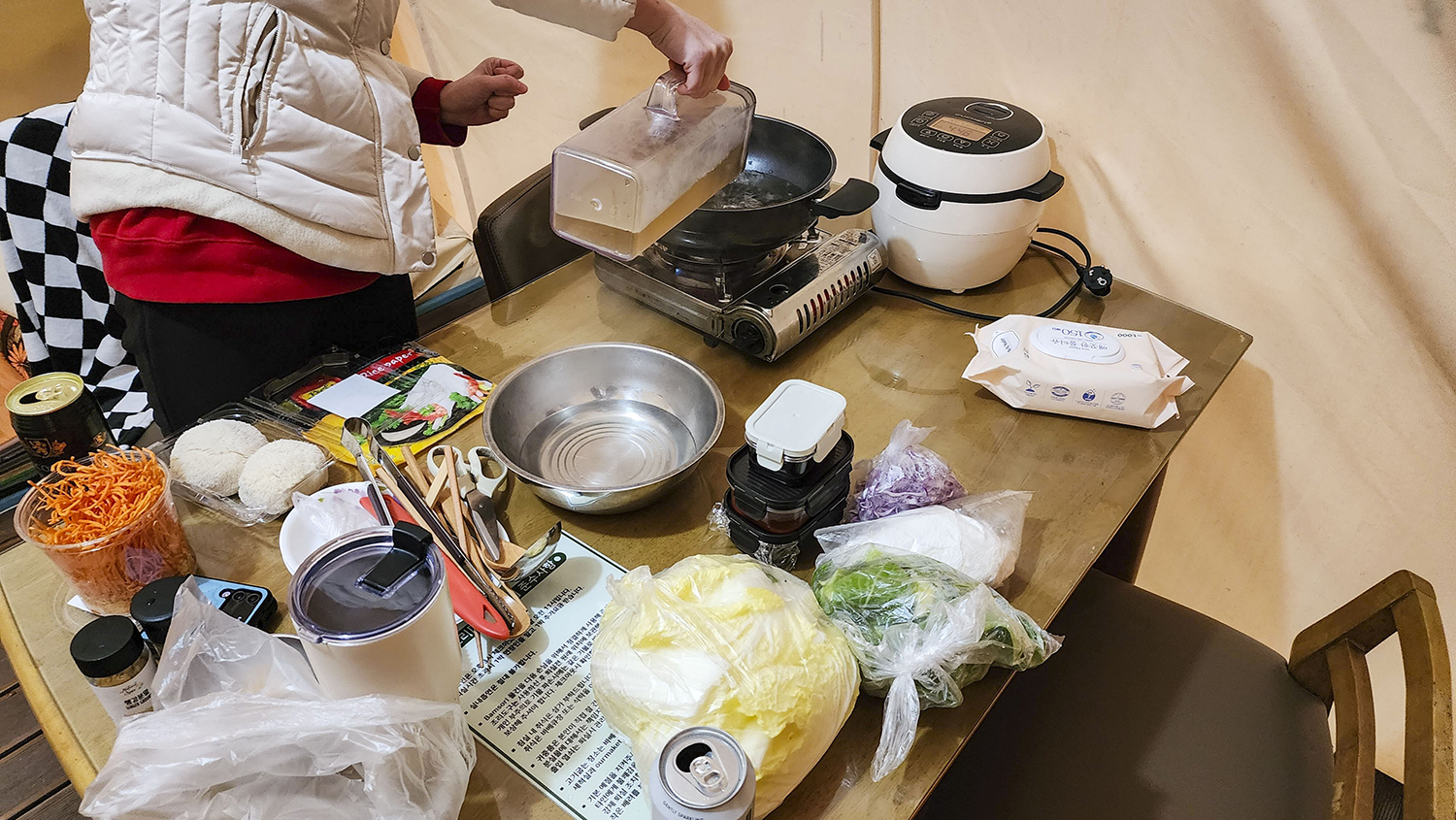 가장 바깥쪽 문을 열면 1차 공간이 나옵니다. 해당 공간에는 간단한 싱크대와 테이블, 의자 등이 있었기 때문에 추운 날씨라고 하더라도 충분히 조리를 하고, 편하게 식사를 즐길 수 있었습니다. 덕분에 운치 좋은 풍경을 바라보며 시간을 보내는 것이 가능했습니다.
