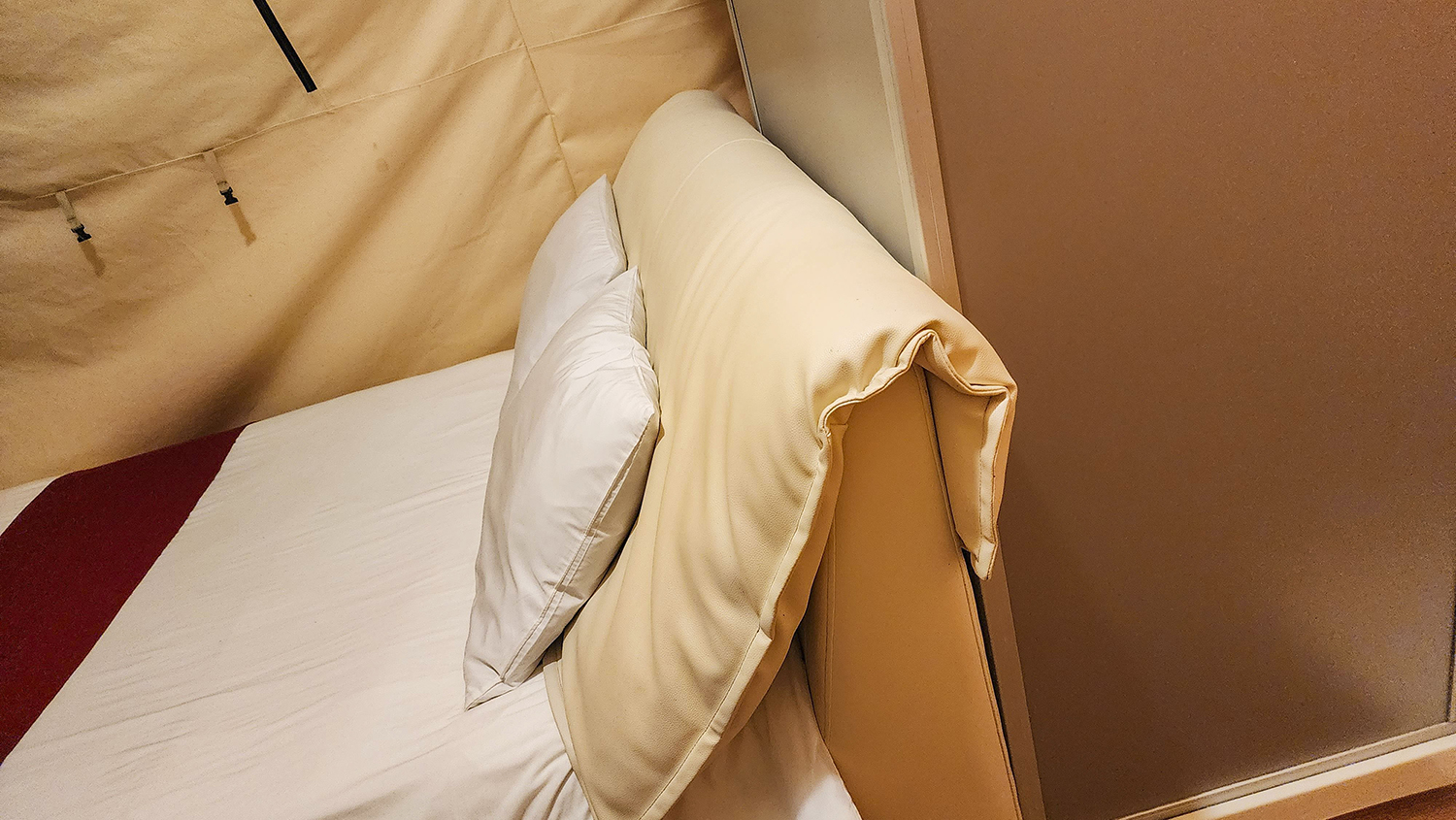 2차 공간은 휴식을 취하고, 잠을 청할 수 있도록 되어 있습니다. 여기에는 침대, TV, 화장실(샤워기, 세면대 및 변기)가 마련되어 있었기 때문에 비록 약간 좁기는 하지만 추운 겨울이나 더운 여름에 굳이 밖으로 나가서 화장실과 샤워실을 이용하지 않아도 된다면 편리함이 있었습니다.