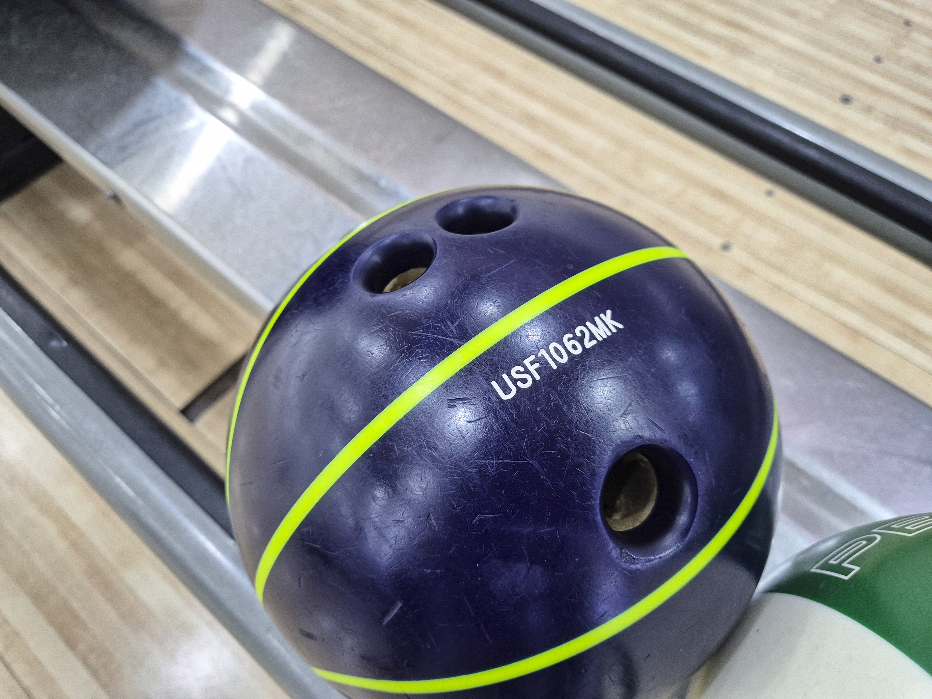 하우스 볼인데도 불구하고 이 역시 상태가 좋습니다. 조금씩 약한 스크래치가 있기는 하나, 큰 흠집이 아니기 때문에 내가 원하는 방향대로 잘 굴려만 준다면 끝까지 쭉 뻗어나갑니다. 게다가 무게감도 좋고, 무엇보다 기본 손가락 구멍이 크기 때문에 저처럼 평소에 손가락 크기 때문에 강제로 무거운 무게를 드셨던 분들도 보다 가벼운 볼로 즐길 수 있습니다.