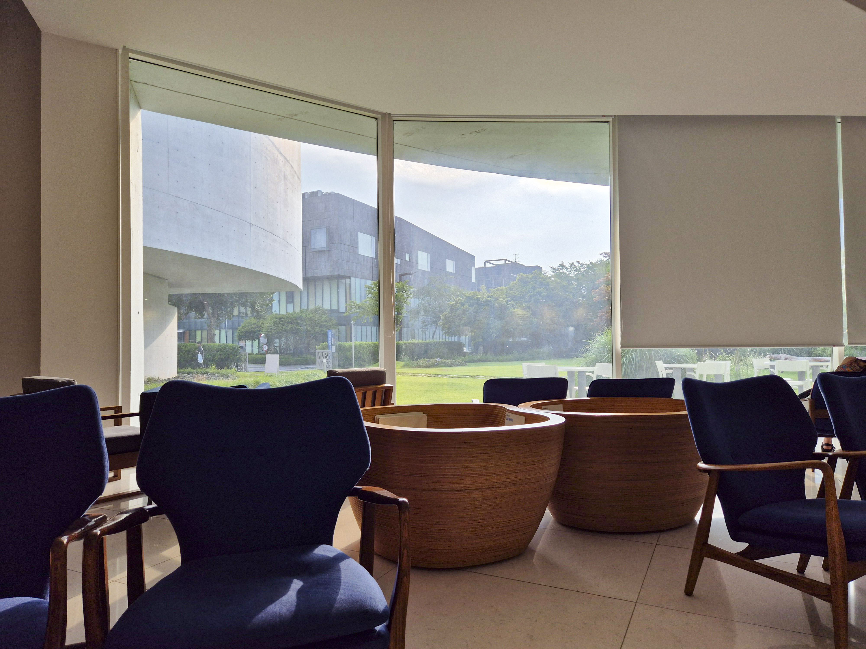 우선 파주 미메시스 아트 뮤지엄 카페의 내부 모습을 보여드리도록 하겠습니다. 보시는 것처럼 전면부에 큰 창이 있기 때문에 자연 채광이 환하게 들어온다는 장점을 보유하고 있습니다. 한여름에는 제법 뜨거울 수 있지만, 분위기 자체가 굉장히 좋으며, 특히 겨울에는 햇볕이 들어오는 자리에 앉으면 편안함과 따스함을 함께 느낄 수 있습니다. 게다가 넓은 마당으로 인해 개방감도 굉장히 뛰어납니다.