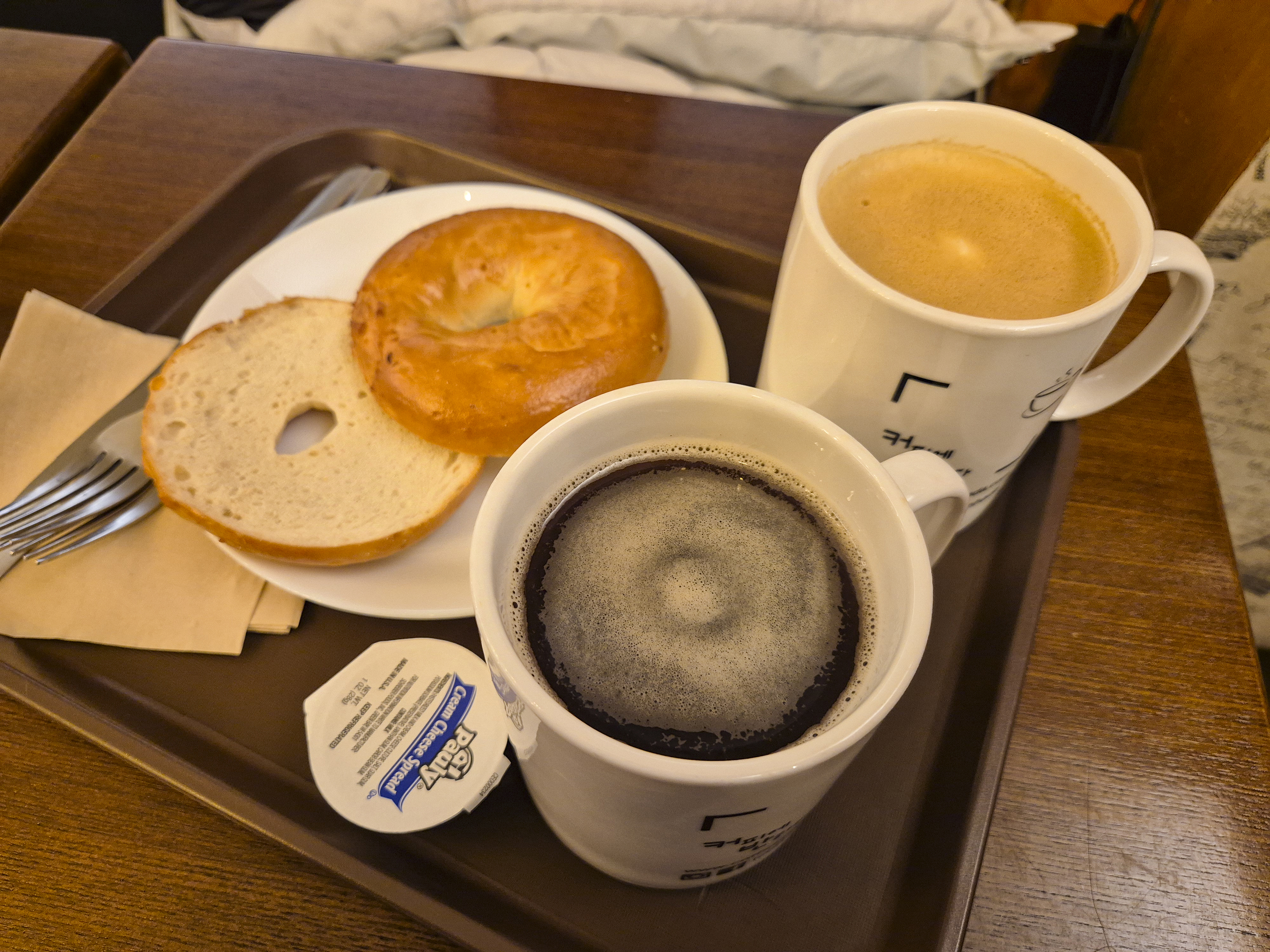 제가 정말 좋아하는 조합 중 하나인데요. 스타벅스 같은 곳으로 가도 자주 먹는 조합이에요. 그런데 그런 곳들은 크림치즈 양이 적은데, 여기는 양쪽에 지금 보시는 것처럼 충분히 발라도 되더라고요. 그래서 진짜 제 개인 취향에 딱 알맞았던 것 같아요. 여러분들에게도 추천하고 싶어요.